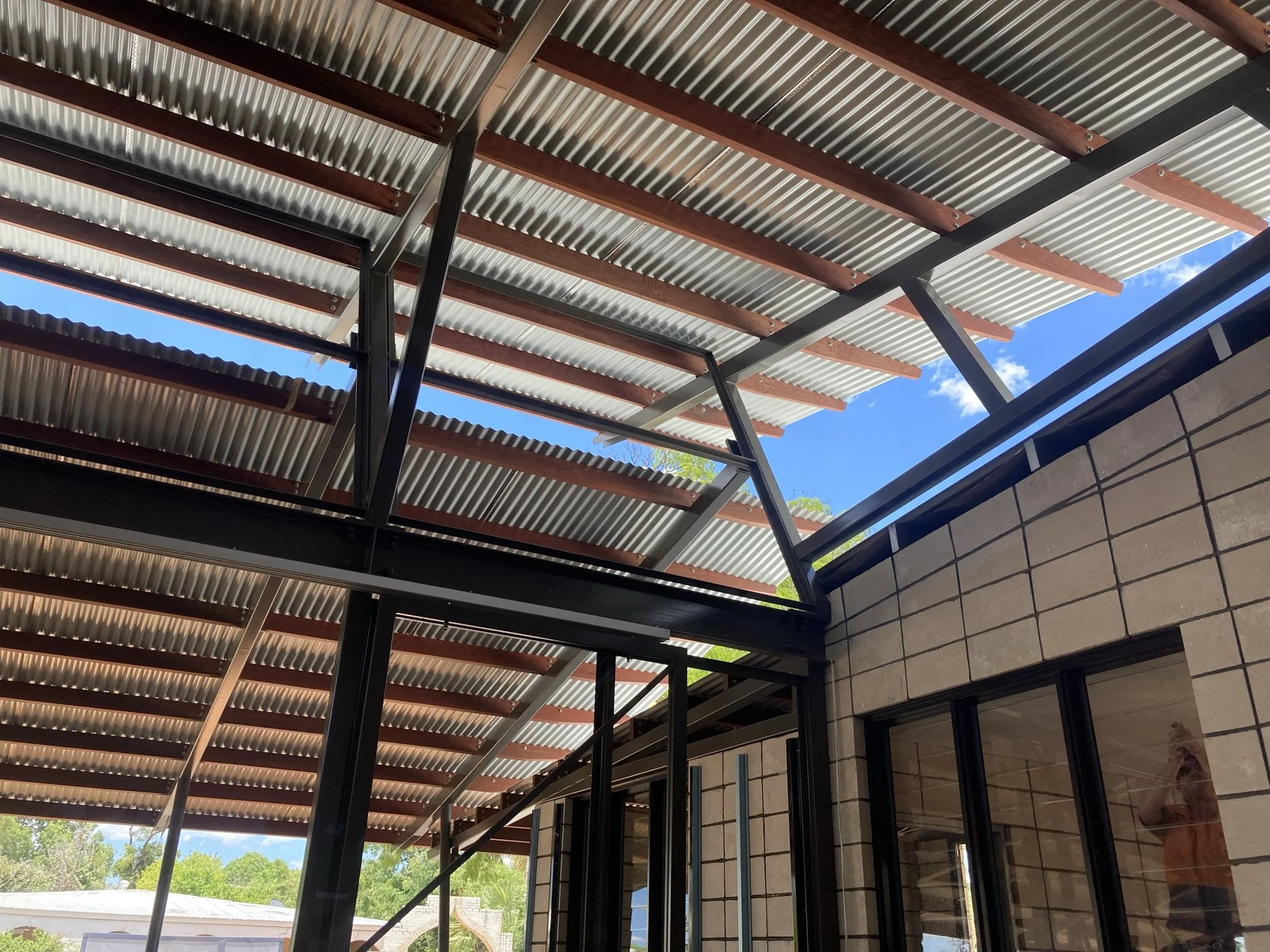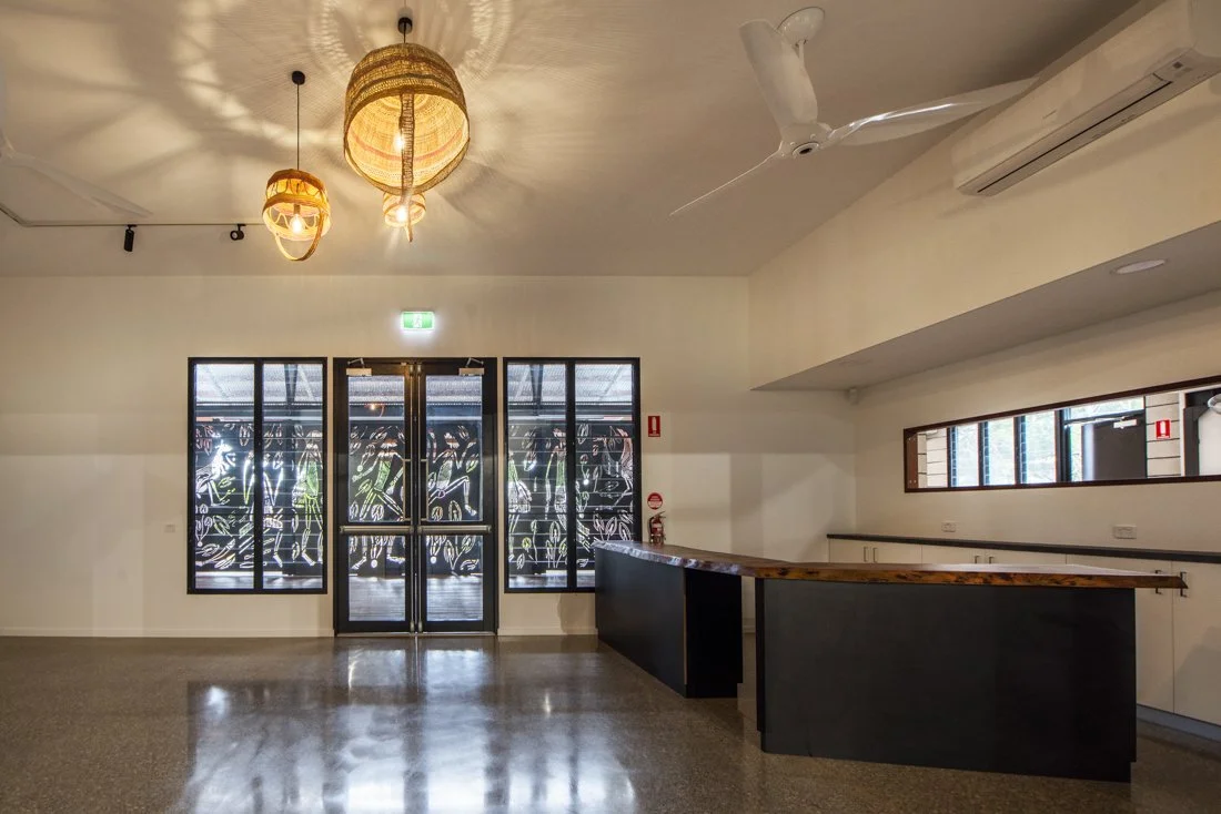 Mimi Arts Gallery Construction Upgrades included demolition of office and exhibition spaces and construction of new architecturally designed purpose built administration, management, exhibition, storage, workspaces and verandas. The whole building was re-cladded and a 80kWh solar system installed. Custom laser cut panels, local artwork and landscaping complete the exciting re-imagining of the galley.